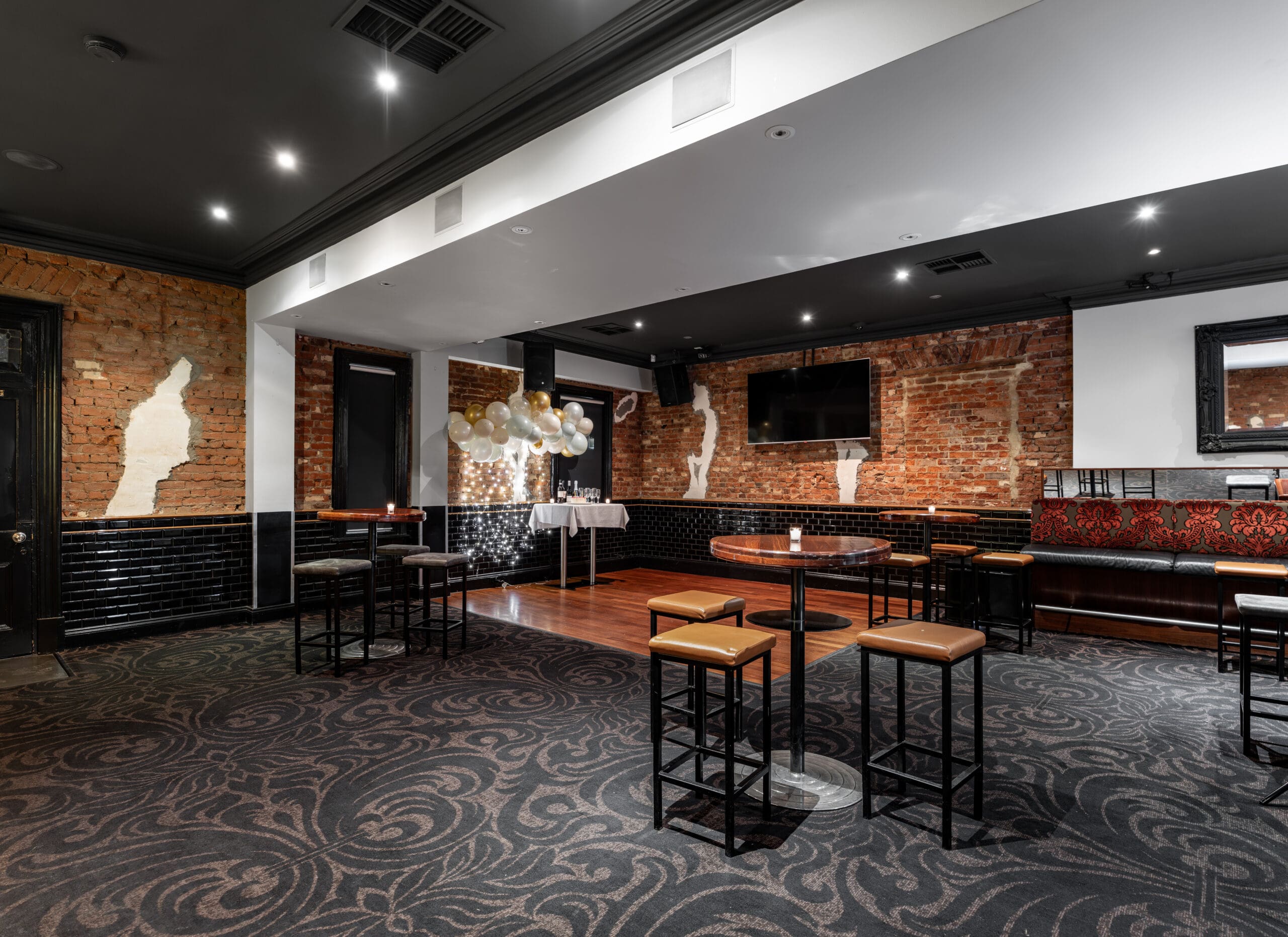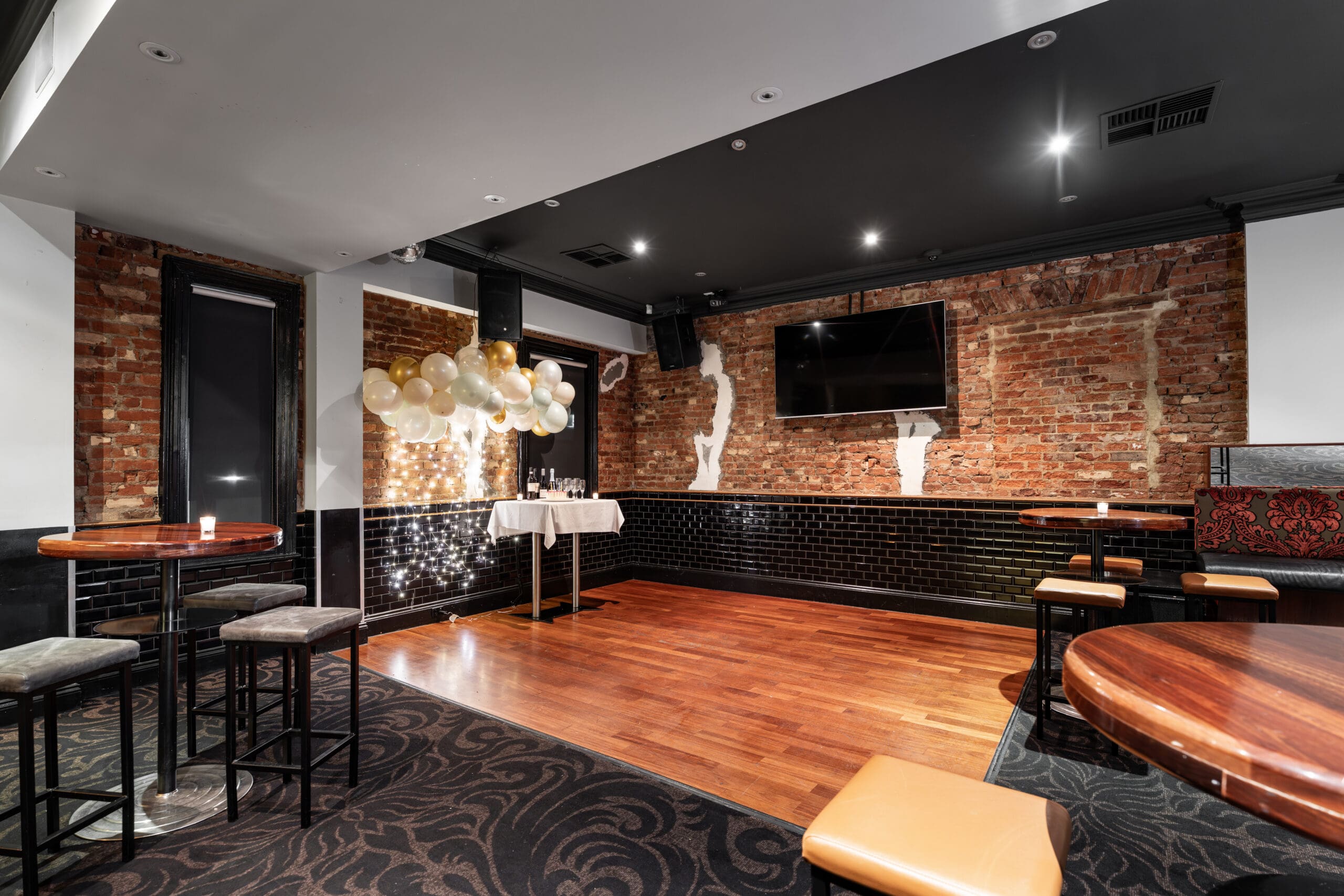 Our ‘Upstairs’ space, located on the first floor of The Alma, provides a fully private setting for your event. It features its own heated balcony, boasting scenic views of the Adelaide city skyline.
